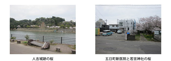 人吉城内、そして五日町に建築中の新医院のお隣、若宮神社の桜も綺麗に咲いていましたのでご紹介します。