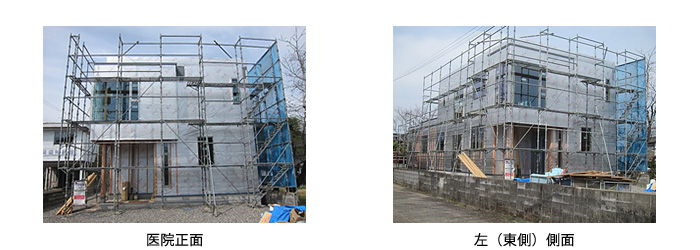 これからは内部の配線や外壁工事に入る予定です。1階左手入口の上が院長室です。