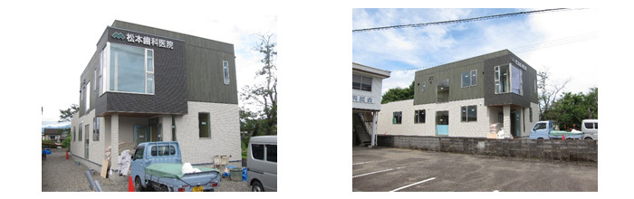 新医院近況:五日町の医院は、外壁が完了、医院の名称(サイン)を正面左側に掲示しました。