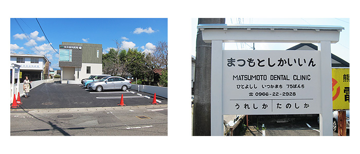 また新しい医院の入口左手の白い木の看板は、肥薩線の旧い駅の駅名標に合わせた鉄道の駅の雰囲気で作りました。