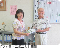 人吉市末次教育長にどう「フィラ・ニポニカ」を贈呈(ジュグリット先生を讃える会前田会長より)