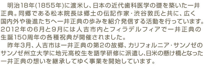 「ドクトル・一井正典~米国歯科開業日本人第一号~」の講演を無事終了しました。